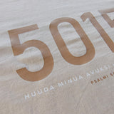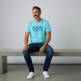T-paita Jumalan puhelinnumeron (Psalmi 50:15) klassikkotekstillä "5015 Huuda minua avuksi hädän päivänä".